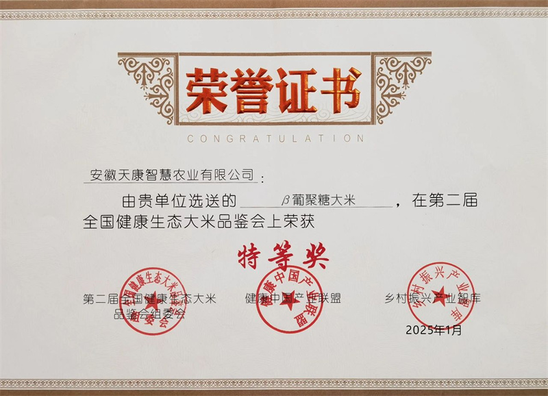 1月19日,由健康中國產(chǎn)業(yè)聯(lián)盟、鄉(xiāng)村振興產(chǎn)業(yè)智庫、《米商》傳媒、《品牌農(nóng)業(yè)傳播》等平臺(tái)聯(lián)合發(fā)起的第二屆全國健康生態(tài)大米品鑒會(huì)在浙江湖州皇冠假日酒店舉行。經(jīng)過中檢、華測(cè)等國內(nèi)專業(yè)檢測(cè)機(jī)構(gòu)的現(xiàn)場(chǎng)嚴(yán)格檢測(cè),并由來自江南大學(xué)食品學(xué)院、浙江工商大學(xué)食品與生物工程學(xué)院的專家進(jìn)行口感現(xiàn)場(chǎng)測(cè)評(píng),最終從300多個(gè)參賽大米樣品中評(píng)選出第二屆全國健康生態(tài)大米品鑒會(huì)特等獎(jiǎng)(最高獎(jiǎng))十名,金獎(jiǎng)銀獎(jiǎng)優(yōu)勝獎(jiǎng)若干。安徽天康智慧農(nóng)業(yè)有限公司的β葡聚糖大米榮獲特等獎(jiǎng),這也是安徽省參賽大米中唯一獲得特等獎(jiǎng)的企業(yè)。