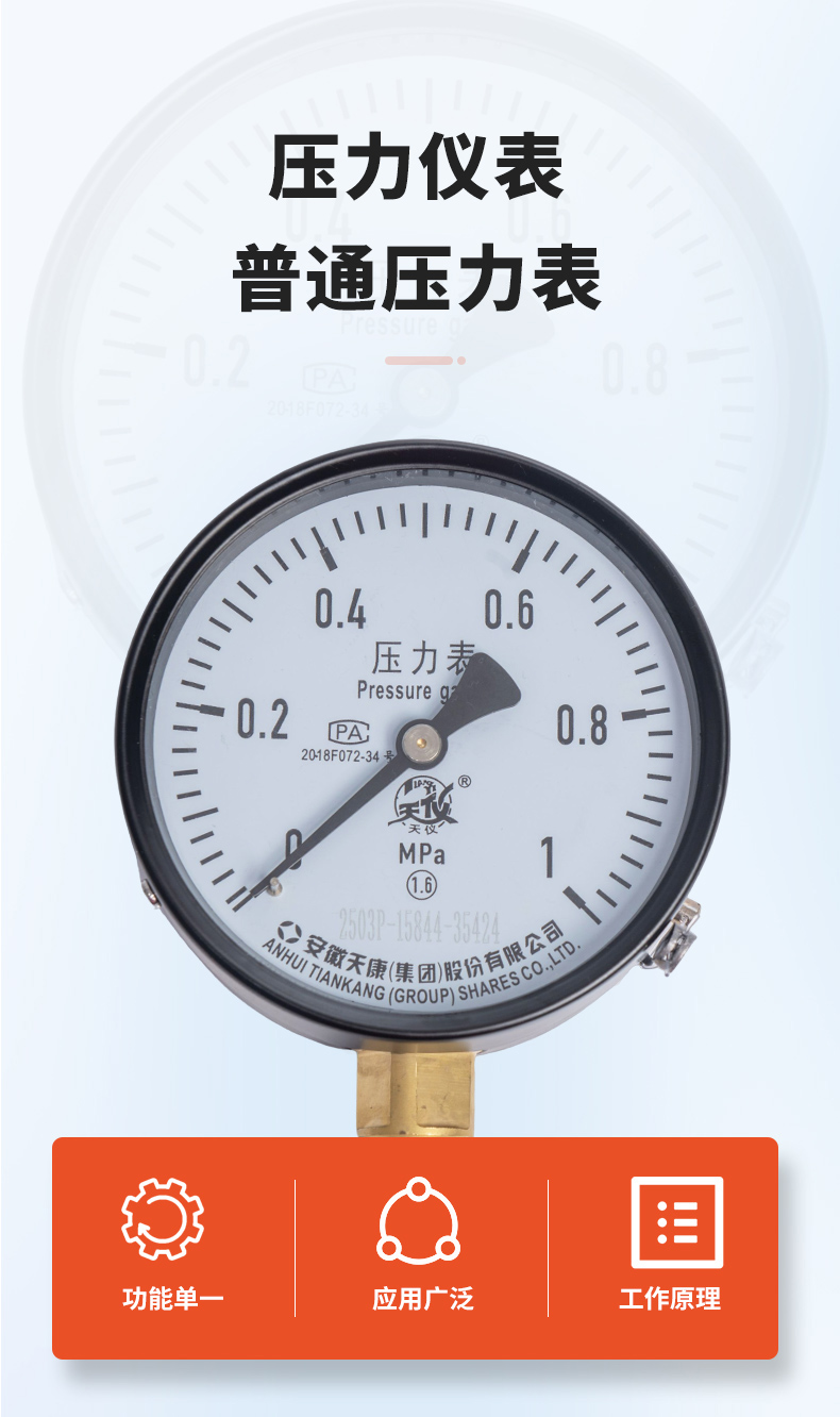 普通壓力表屬于就地指示型壓力表,就地顯示壓力的大小,不帶遠(yuǎn)程傳送顯示、調(diào)節(jié)功能。在工業(yè)過(guò)程控制與技術(shù)測(cè)量過(guò)程中,由于一般壓力表的彈性敏感元件具有很高的機(jī)械強(qiáng)度以及生產(chǎn)方便、安裝簡(jiǎn)單讀數(shù)方便等特性,使得一般壓力表得越來(lái)越廣泛的應(yīng)用。