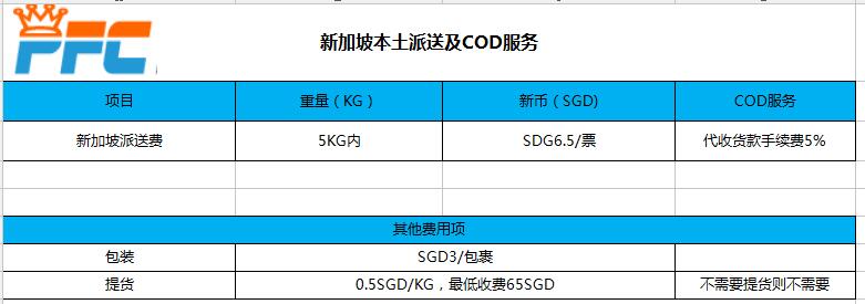1.以上價目只適用于收件及派件地點均為新加坡。