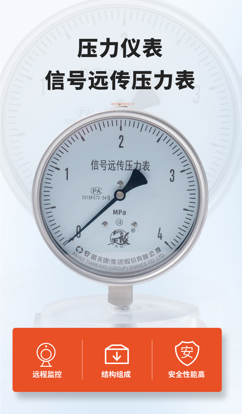 信號(hào)遠(yuǎn)傳壓力表由一個(gè)彈簧管壓力表和一個(gè)滑線電阻式發(fā)送器等所組成。電阻遠(yuǎn)傳壓力表機(jī)械部分的作用與一般彈簧管壓力表相同。