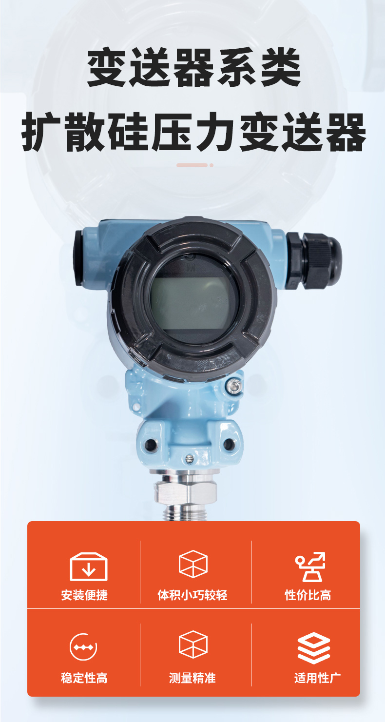 2088擴(kuò)散硅壓力變送器具有工作穩(wěn)定,安裝使用方便,體積小,重量輕,性能價(jià)格比高等特點(diǎn).能在各種正負(fù)壓力測(cè)量中得了廣泛應(yīng)用.
