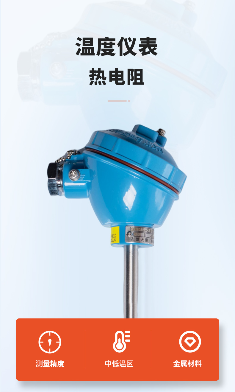 熱電阻(thermal resistor)是中低溫區(qū)常用的一種溫度檢測(cè)器。熱電阻測(cè)溫是基于金屬導(dǎo)體的電阻值隨溫度的增加而增加這一特性來進(jìn)行 溫度測(cè)量的。它的主要特點(diǎn)是測(cè)量精度較高,性能穩(wěn)定。其中鉑熱電阻的測(cè)量精確度是較高的,它應(yīng)用于工業(yè)測(cè)溫。熱電阻大都由金屬材料制成,目前應(yīng)用多的是鉑和銅,此外,現(xiàn)在已開始采用鎳、錳和鍺等材料制造熱電阻。金屬熱電阻常用的感溫材料種類較多,常用的是鉑絲。工業(yè)測(cè)量用金屬熱電阻材料除鉑絲外,還有銅、鎳、鐵、鐵-鎳等