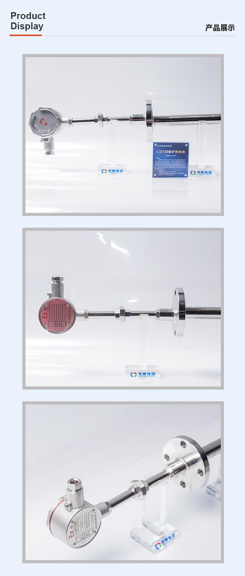 COT裂解爐熱電偶打破進口產(chǎn)品對乙烯裝置裂解爐測溫的壟斷,是我司與中石化聯(lián)合研發(fā),主要用于乙烯裂解爐出口溫度,根據(jù)不同裂解爐和用戶的要求不同,其熱電偶保護管采用不同特殊結(jié)構(gòu)使之緊貼于裂解爐管內(nèi)側(cè),同時又不影響物料高速流動廣泛應(yīng)于全國各大乙稀項目生產(chǎn)過程中裂解爐溫度測量與過程控制。 目前已在古雷某項目、鎮(zhèn)海某項目投入使用,并取得專利ZL201920552453.3。