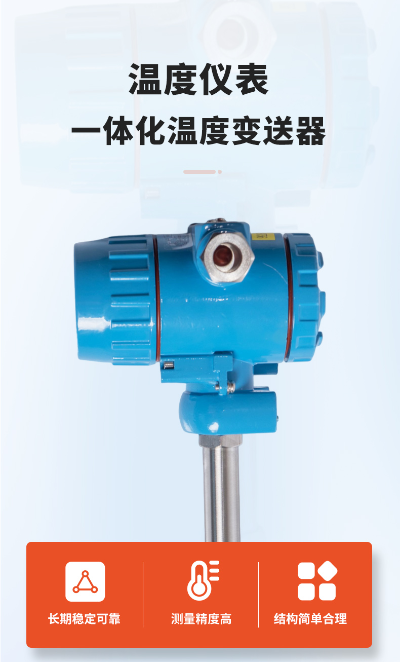 一體化溫度變送器是溫度傳感器與變送器的結(jié)合,以十分簡(jiǎn)捷的方式把-200~+1600 ℃ 范圍內(nèi)的溫度信號(hào)轉(zhuǎn)換為二線制4~20mA DC 的電信號(hào)傳輸給顯示儀、調(diào)節(jié)器、記錄儀、DCS等,實(shí)現(xiàn)對(duì)溫度的測(cè)量和控制。一體化溫度變送器是現(xiàn)代工業(yè)現(xiàn)場(chǎng)、科研院所溫度測(cè)控的更新?lián)Q代產(chǎn)品,是集散系統(tǒng)、數(shù)字總線系統(tǒng)的必備產(chǎn)品。